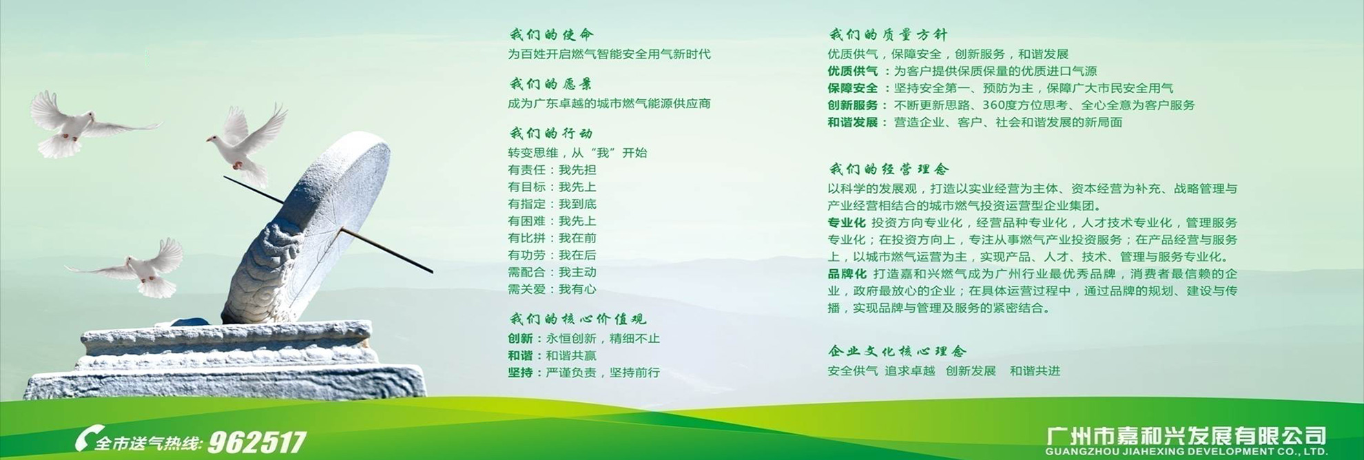 公司在廣州經營多年的液化氣的過程中,積累了大量的行業資源,積極配合政府管理及倡導行業溝通協調。現在“嘉和興”已成為廣州液化氣市場的著名品牌。